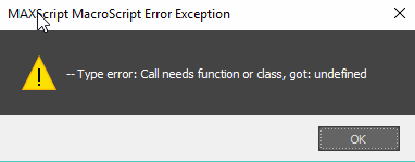Configuration problems can be the underlying cause of such errors, hence the suggestion of clearing them (which is what the instructions in that link do). Configuration problems can be the underlying cause of such errors, hence the suggestion of clearing them (which is what the instructions in that link do). Call needs function or class, got: Undefined when using different views in 3ds max.. Call needs function or class, got:
