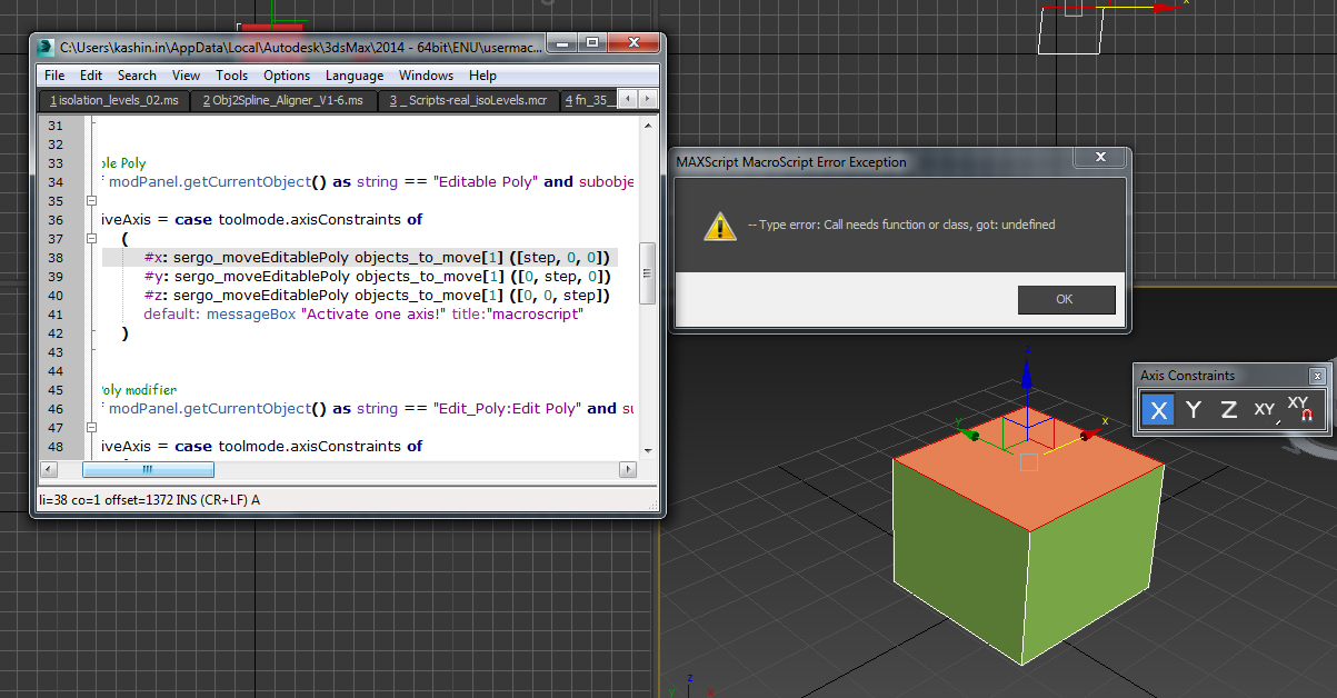 If this is your first visit, be sure to check out the faq by clicking the link above. Undefined when using different views in 3ds max At end of script, expected end of string If this is your first visit, be sure to check out the faq by clicking the link above. Configuration problems can be the underlying cause of such errors, hence the suggestion of clearing them (which is what the instructions in that link do). You may have to register before you can post: Call needs function or class, got: Those errors all appear to be related to the modeling ribbon which is a standard part of max. To start viewing messages, select the forum that you want to visit from the selection below. Call needs function or class, got:. Call needs function or class, got: